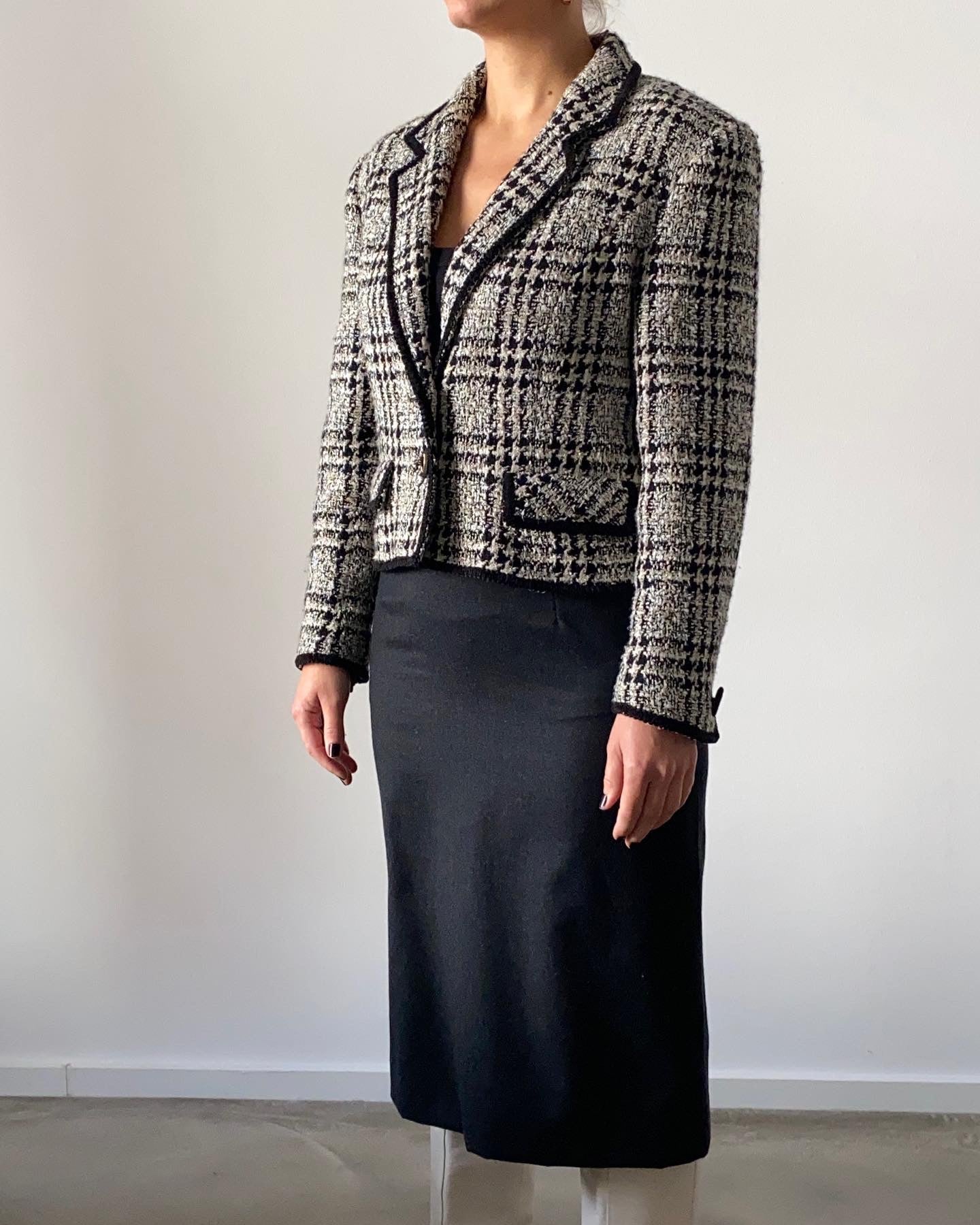 Hero Paris bouclé tweed jacket in black, cream and gold.